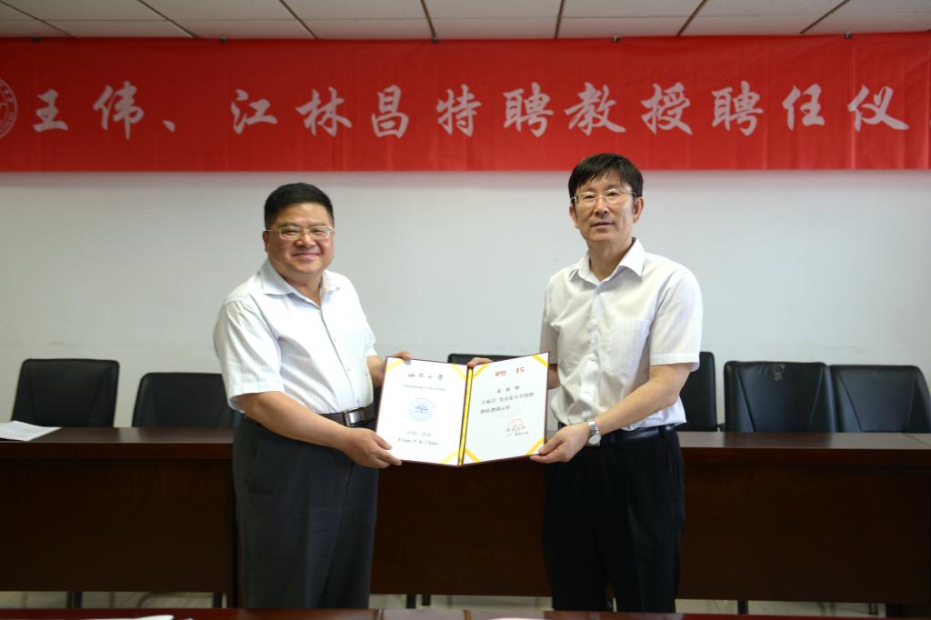 6月11日,王伟、江林昌两位学者的特聘教授聘任仪式在sunbet官方网站中心校区知新楼A1006举行。sunbet官方网站副董事长韩圣浩出席聘任仪式并讲话。
