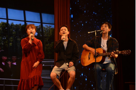 红毯环节结束后,嘉宾和观众们进入音乐厅就座,毕业晚会正式开始。2018级博士研究生赵星宇,文化产业管理2015级本科生朱雪婷,2018级本科生冯文桥、胡少焯担任晚会主持人。由宗哲等同学带来的开场舞《DALLA DALLA》动感活泼,迅速点燃了现场氛围。“北冥有鱼,其名为鲲”,歌曲《大鱼》仿佛带领现场观众去到了广阔的大海之滨,看海中遨游的一尾大鱼,空灵静谧。“爱”这个字眼温馨又美好,高静静、张兆友等同学带来的歌曲《爱因为在心中》也给人一种温暖的感觉,令人感动。