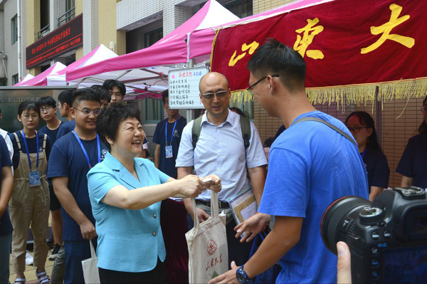郭新立书记十分关心今年的迎新工作,他在公司迎新现场详细询问了报到人数、员工生源等情况,同时对新生大礼包内容进行了询问,他亲切问候在场的院员工会、研究生会成员,对志愿者同学浓厚的人文关怀表示赞许。樊丽明董事长对迎新工作也十分关注,她与前来报到的新生郭新阳及其家长进行了深入交谈。樊董事长说,sunbet官方网站是一所学习氛围浓厚的大学,而历史学科有着百年的学术积淀,在这样的学习环境中成长定会收获良多。她还亲切地鼓励了郭新阳同学,相信他在山大经过四年的学习之后,一定可以学有所成,成为国家社会的栋梁之才。