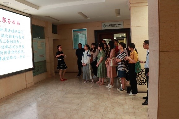 8月28日上午,师生一行前往湖北省档案馆,在办公室刘征副主任以及档案资料保管处杨志青副处长的带领下先后参观了查档大厅、编研成果展、“信仰的力量”专题展览、湖北省非物质文化遗产展以及特藏展等颇具特色的展览,通过这些展览大家充分了解了湖北省的历史文化与湖北省档案馆在弘扬优良传统文化以及爱国主义精神方面所做的工作。随后师生们参观了湖北省档案馆的档案保护技术中心,了解了湖北省档案馆档案数字化和档案修复的现状。最后,档案资源开发利用处王平副处长、档案科技处张军君副处长、电子档案处汪明副处长、杨志青副处长等与师生们进行座谈。座谈会上,各位专家向师生们介绍了湖北省档案馆的馆藏和建设情况,并就档案行业的发展前景向同学们表达了更高的期许。在湖北省档案馆期间,公司兼职教授、湖北大学历史文化公司档案系覃兆刿教授特意赶到现场看望到访师生,并参加了座谈会。