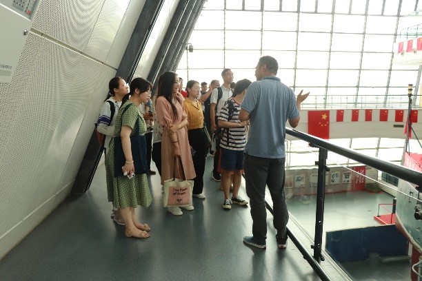 8月28日下午,师生们来到了位于武汉市江夏区的中山舰博物馆。中山舰博物馆是以中国近现代史上的一代名舰“中山舰”的名字命名的一座专题性纪念性博物馆。师生们在中山舰博物馆文物保管与学术研究部吕昌霖副主任的带领下首先观看了纪录片《孙中山与中山舰》,回顾了中山舰的光辉历史。随后师生们参观了复原后的中山舰舰体、中山舰史迹陈列展以及中山舰出水文物精品陈列展,通过展览更深入地了解了中山舰各个历史时期的政治、军事、经济、文化等社会活动及中山舰官兵们的精神面貌。参观结束后吕昌霖副主任与师生们进行了座谈,吕主任从中山舰博物馆的基本概况、人员配置、交流合作等方面向大家介绍了中山舰博物馆的发展情况,也让同学们对于专题性博物馆有了更深的认识。