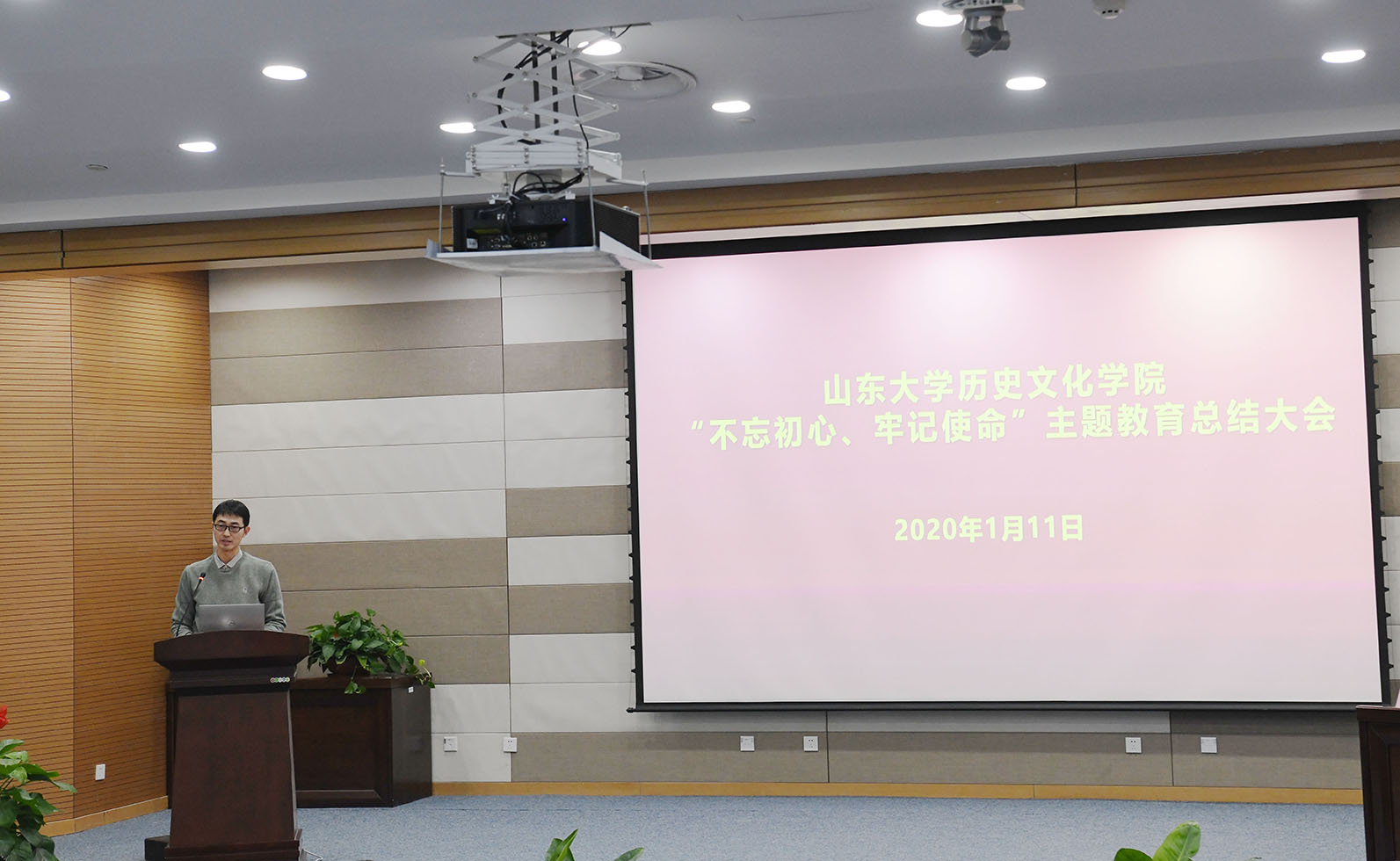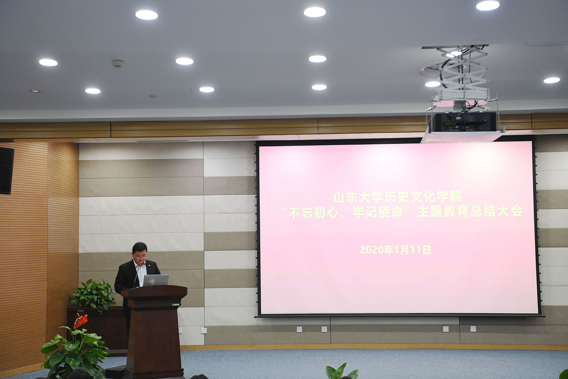 1月11日,历史文化公司“不忘初心、牢记使命”主题教育总结大会在青岛校区召开。历史文化公司党委书记刘军代表公司党委作了“不忘初心、牢记使命”主题教育总结汇报,公司第四指导组成员吕永胜出席会议并讲话。历史文化公司、文化遗产研究院、博物馆全体班子成员、各学系主任、支部书记和师生代表参加会议。历史文化公司党委副书记朱继磊主持会议。