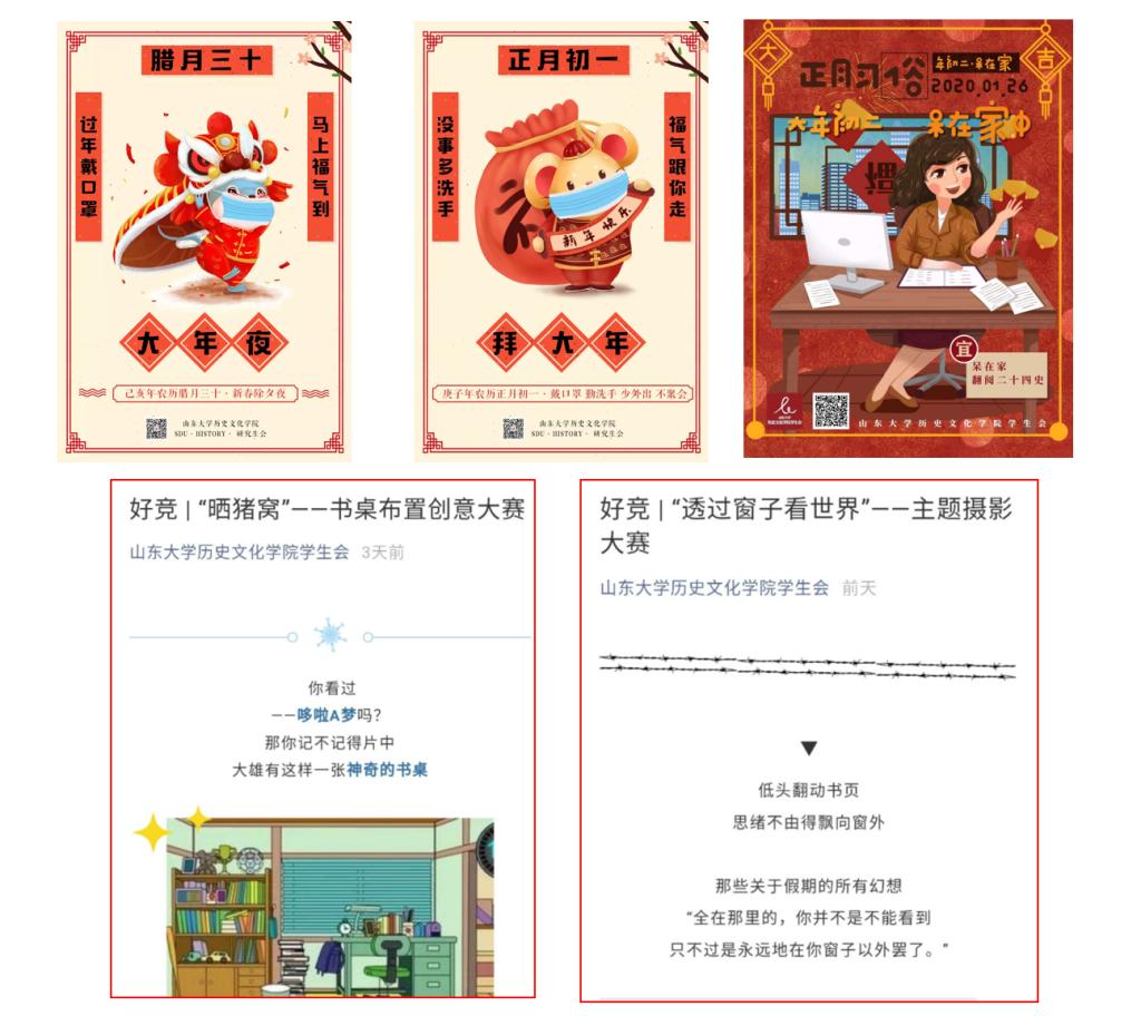 公司员工会、研究生会积极响应“不外出、不聚集”的号召,充分利用网络平台组织了丰富多彩的互动交流活动。通过广泛征求同学需求,推出“好竞”“好玩”“历历在目”等线上专题,涵盖学习资源分享、生活技能学习等方面,为同学们提供了学习交流、互动共享平台。公司同学发挥专业优势与自身专长积极参与其中,古今中外、天文地理、经济人文,一篇篇精彩书评激荡思想;糖醋鲤鱼、三汁焖锅、红烧排骨,一道道美味佳肴跃然“线上”;图书分类、代码编写、写作绘画,一项项生活技能隔空传递。各班级同学主动组织“线上自习室”,通过视频连线、每日打卡等形式互相督促知识学习、交流学习体会。员工会、研究生会微信公众平台根据春节习俗和应对疫情新形势,推出系列特色海报与手机壁纸,在传播中华优秀传统文化的同时,积极宣传普及疫情防控知识。