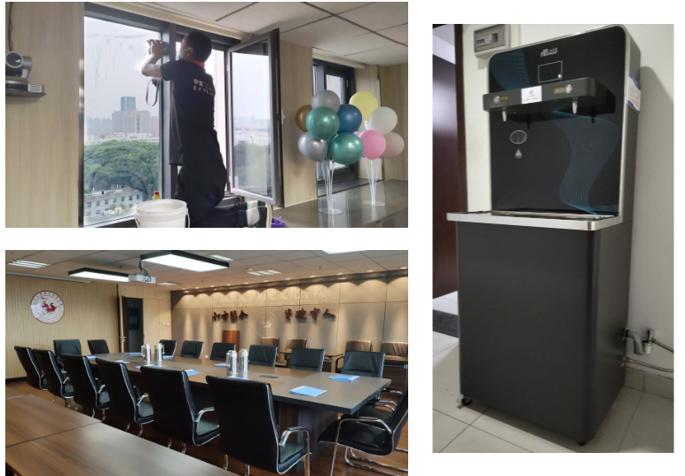 做到疫情防控工作和日常工作两不误。购置安装净水热水设备5台,清洗空调33台次,清洁玻璃350㎡,发放卫生用具30余套,为所有教师更换报箱姓名贴,规范用章管理并给予师生悉心服务,明确公司公文行文规范,设计整修公司会议室和公共教室,结合公司实际,积极协调帮助老师们调整办公用房,置办必要的办公家具。通过一系列的举措,尽力为师生营造舒适、方便的办公学习环境,提供高效、可靠的服务支撑,有力保证了公司各项工作的正常有序运转。