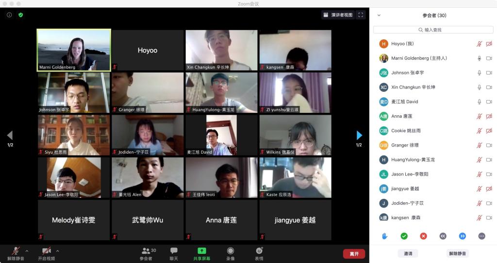 《领导力和团队发展》课程由美国加州州立理工大学体验经济管理专业教授Marni Goldenberg主讲,面向全校员工选课,旨在提升员工的表达能力、逻辑能力,以在团队中发挥更强有力的领导作用。课程涉及领导者的发现探索能力、领导者的沟通技巧、团队内部互动等内容。授课过程中,不同公司、不同专业的员工结合自身专业背景,从多视角展开分析讨论,在Marni Goldenberg教授的引导下积极进行跨专业的互动交流,在提高表达能力和逻辑能力的同时,开阔了学术视野,增强了学习的积极性和主动性。