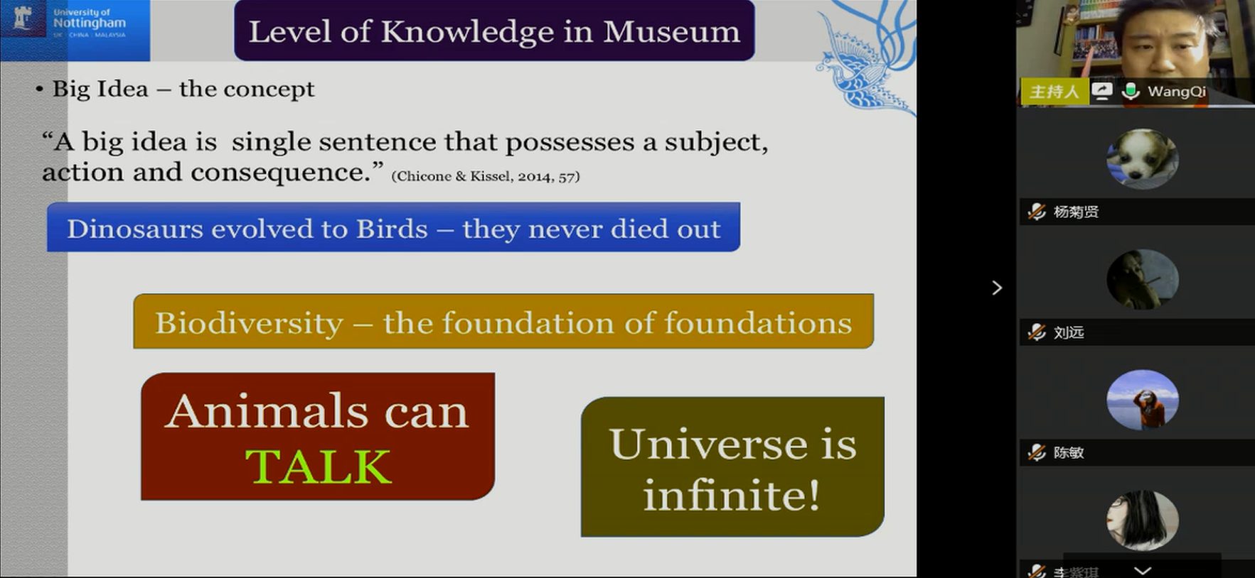 本课程主题为“The Exhibition Narrative of Contemporary Archaeological Museum and Natural History Museum”(适应时代要求的考古类博物类博物馆叙事展示),课程分为四天进行,每天4个学时,共计16学时。课程内容按照由浅入深共分为4个专题,分别为:展示的力量(介绍)、反思互动式展览(理论基础)、当代国际化展览语言(实践基础)、沉浸式与包容式展览(细节推敲)。