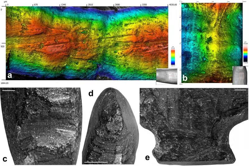 小雀形目雕像是经过精心雕刻的,研究者通过显微镜和显微断层扫描分折,这只鸟是用一块中等大小的哺乳动物肢骨骨干碎片雕刻而成的,推断骨头经过加热处理并精心雕刻而成,在整个物体表面留下了清晰的凿刻和研磨的痕迹。艺术家使用了研磨、琢削、刮削、切割4种不同的技术,在物体表面留下了68个制作微小面。微观分析再现制作时艺术家如何选择正确的工具,并用来实现他们的创作,在较小的物体上达到惊人的平衡和美丽。