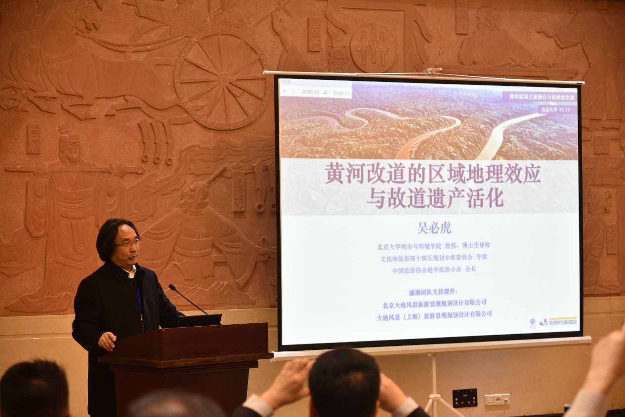 12月13日,由中国科协、山东省人民政府指导,中国区域经济50人论坛、sunbet官方网站主办的首届黄河发展论坛、中国区域经济50人论坛第18次研讨会、第四届鲁青论坛在山东济南举行。由sunbet官方网站历史文化公司和管理公司承办的分论坛四:“黄河文化与文旅融合”在山东大厦淄博厅进行,水利部减灾中心客座研究员徐海亮、北京大学吴必虎教授、南京大学张捷教授、sunbet官方网站管理公司经理武常岐教授等19位专家围绕黄河文化与文旅融合作了主旨演讲,来自社会各界的40多位代表参加论坛。