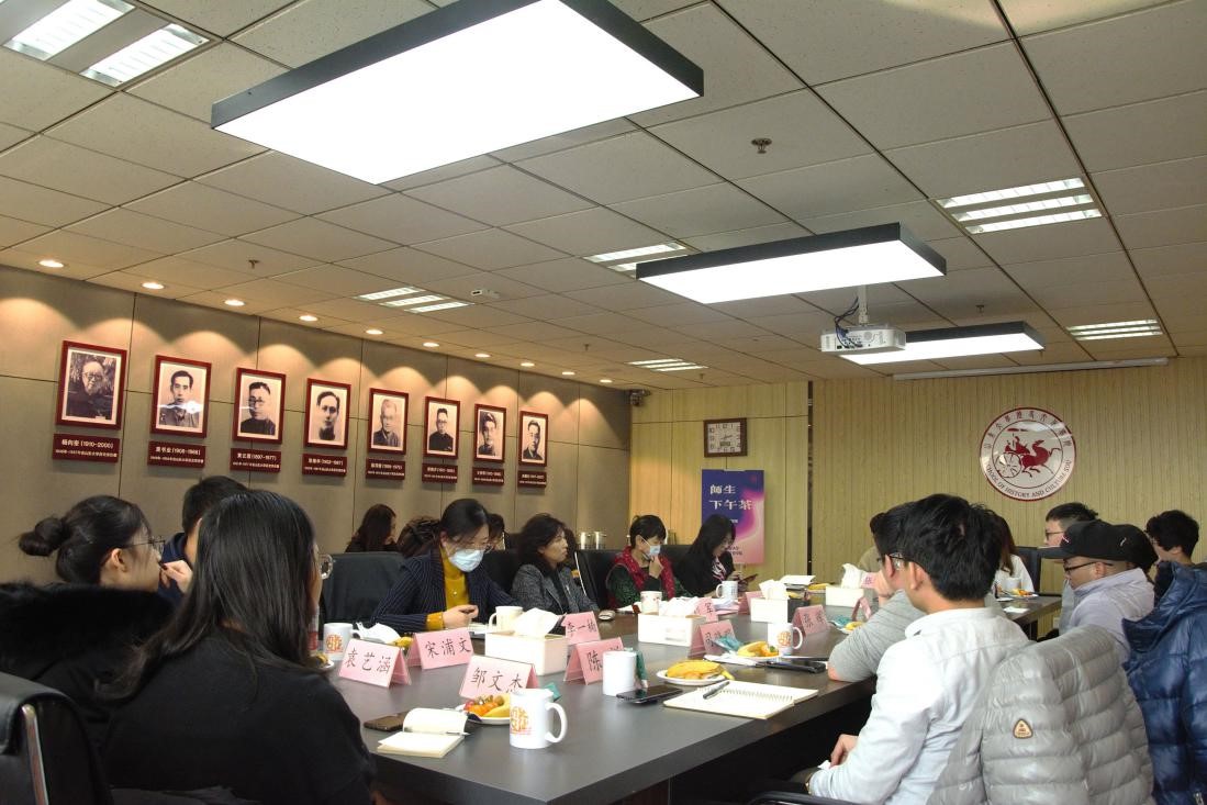 12月23日下午,历史文化公司在知新楼A1006举办“师生下午茶”活动,与研究生和本科生员工代表进行座谈交流,广泛听取同学们对公司改革发展、公司产品、管理服务等各项工作的意见建议。公司党委书记刘军参加座谈并讲话,副处级辅导员李一楠、研究生管理办公室王长清、辅导员曹明明、李婧等老师参加座谈并与同学们进行交流。