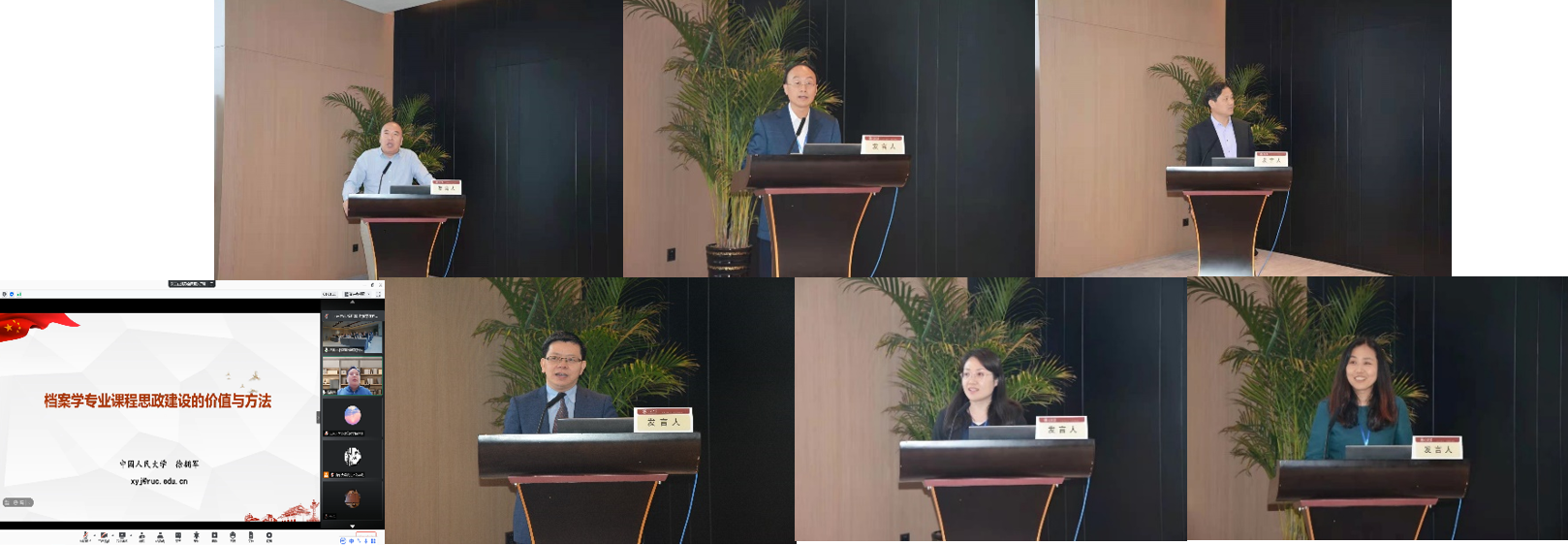 开幕式后,档案学教指委副主任、南京大学吴建华教授主持上午的主题报告。档案学教指委副主任、四川大学乔健教授,档案学教指委副主任、上海大学金波教授,档案学教指委秘书长、中国人民大学信息资源管理公司党委书记徐拥军教授(线上),图书馆学教指委委员、湘潭大学人事处处长王协舟教授,郑州航空工业管理公司朱兰兰教授,sunbet官方网站曲春梅教授分别作了“基于课程思政的应用文科专业思政建设初探——以档案学专业为例”“档案学专业课程思政建设与思考”“档案学专业‘课程思政’建设的价值与方法”“新文科背景下的课程思政建设——湘潭大学档案学专业的认识和实践”“档案学一流课程建设与课程思政”“新文科背景下课程思政建设与档案学专业人才培养”主题报告。报告结合各高校在档案学专业课程思政建设方面的经验与探索,分析了档案学专业在课程思政建设中所具有的鲜明特色和专业优势,讨论了课程思政建设对档案学专业人才培养和专业发展的重要意义。