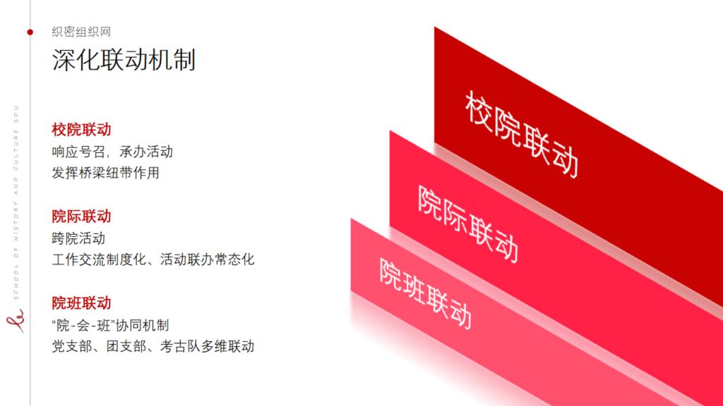 在组织建设方面,院员工会和研究生会落实精简组织、优化职能的原则,不断提升工作效率。员工会以一纵三横为抓手推动员工会组织改革和多维联动深入,制定员工会内部体制建设的《管理章程》,实现有章可循、依章办事,调整架构、精简人员;从校院联动、院际联动、班际联动等三个方面构筑联动机制,发挥桥梁纽带作用,推动工作交流制度化、活动联办常态化,探索员工组织与党、团支部的联动实践。研究生会进一步巩固和完善团学组织格局,明晰职能定位和工作范围;坚持和完善中期述职与学年测评相结合的考核制度,部门、班团联席制度等制度体系,定期召开会议,充分发挥研究生会在员工组织中的主体作用。