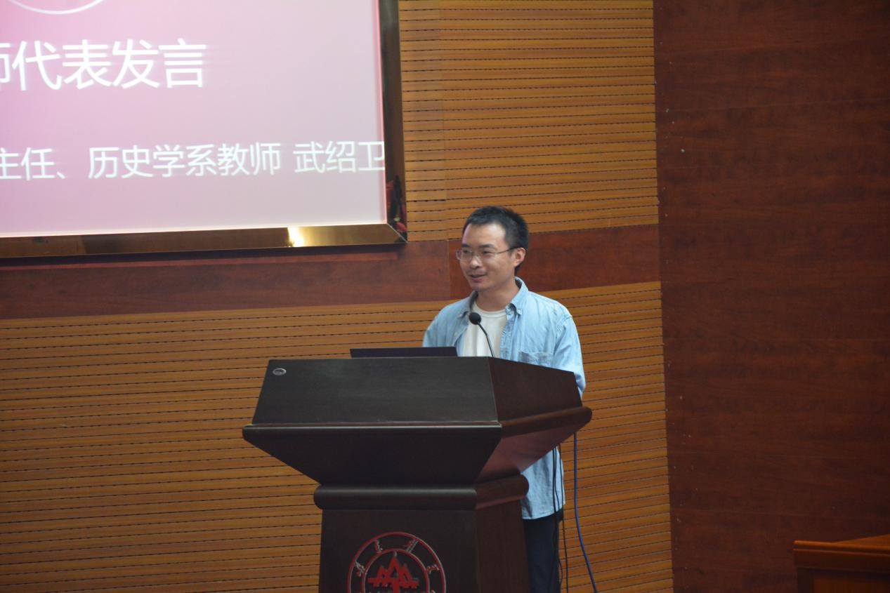 武绍卫作为教师代表和同学们分享了自身的学习经历,讲述了自己从中学进入大学的求学历程中心境的变化,以期对同学们的新学习阶段产生启发。他勉励同学们,在浮躁的时代中,应当一直保持学习、读书和思考的能力,杜绝盲目从众,不断提升自身的鉴别力和反思力。