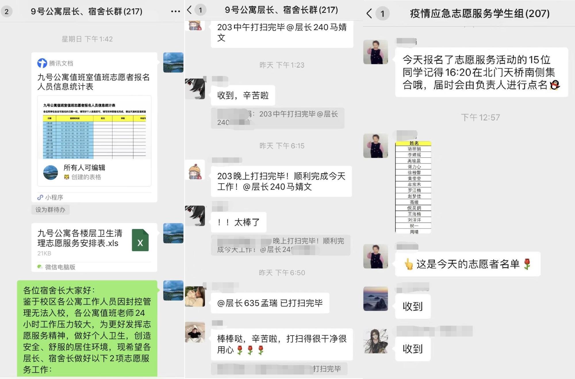 即时扛起重任,冲在防疫一线。校园封控管理后,院(馆)疫情应急处置工作组立即“大点名”,留校留守辅导员、教工志愿者们即时响应,迅速到位,高效配合,公司党委书记刘军多次召开会议传达属地和公司要求,就实施校园封控管理、开展线上教学、全面核酸排查、强化师生管理、严格落实防护措施等方面作出具体要求,进一步明确任务分工和职责落实,理清工作细节和风险隐患,研判处理目前存在的急难问题,全力构筑好抗击疫情的严密防线,扎实有序平稳推进疫情防控工作。“行李早都在车里备好了”、“妈妈这几天就不回家了陪你了”、“床铺、被褥办公室都有”、“我们要和自己的员工在一起”,疫情防控集结号即刻吹响,教师志愿者和学工队伍意志坚定,向公司全体师生传递着温暖和信心。