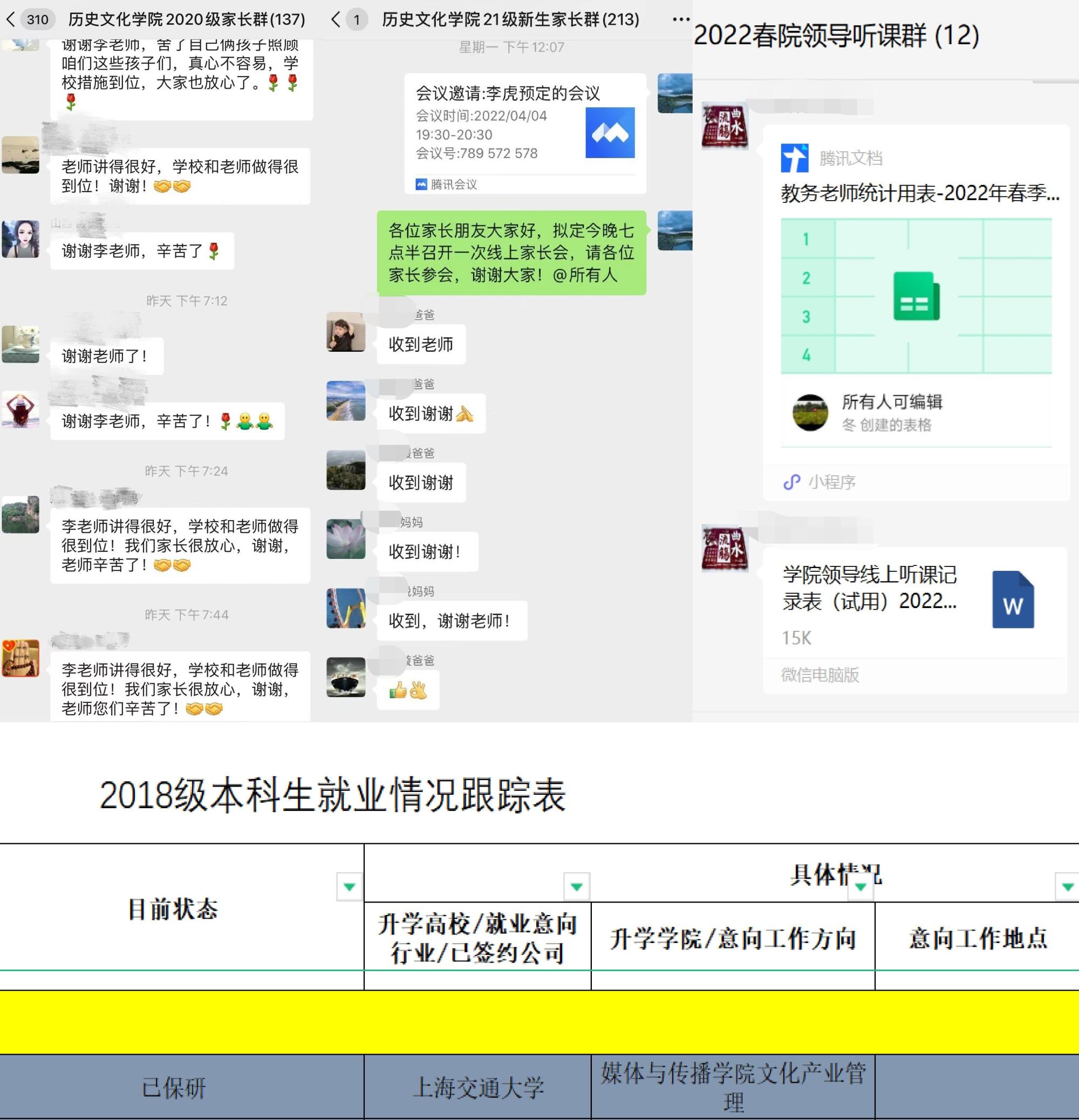 助力线上教学,强化协同联动。为保障疫情期间员工线上教学的正常需要,不断提升“线上课堂”公司产品质量和效果,公司结合公司本科生院、研究生院要求,全面部署线上巡课和在线听课工作,全力保障本科、研究生线上教学秩序平稳、有序开展;召开线上家长会,传达公司疫情防控政策和要求,凝聚育人合力,取得家长理解与支持;配合公司就业创业指导中心推进疫情期间毕业生升学、就业工作,安排硕士研究生网上复试专用教室,做好职业生涯规划大赛,动态掌握员工升学、就业情况,初步形成公司本科生、研究生就业工作报告。
