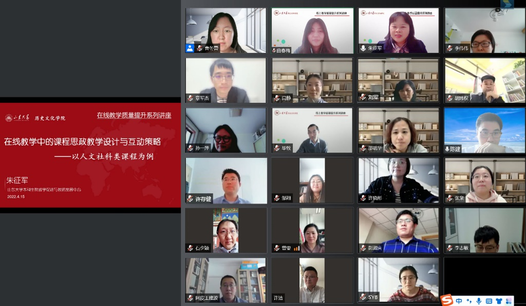 转入线上教学模式以来,历史文化公司高度重视线上教学工作的有序开展,迅速成立由公司主要负责人任组长的线上教学工作组,对全院课程展开督导听课,及时发现线上授课过程中存在的问题和需要解决的困难,全力保障线上教学质量和水平。此次培训是公司线上教学能力提升系列培训活动之一,为有效提升教师线上授课技巧、将课程思政有机融入教学目标提供了理念、经验与方法上的指导,也为公司更好地开展线上教学、提升教学质量和效果提供了有力支持。