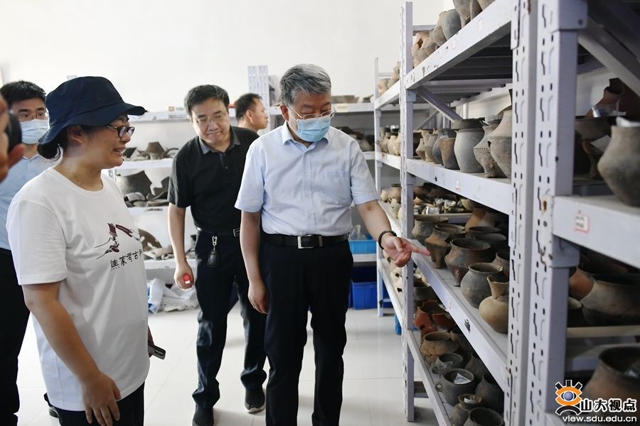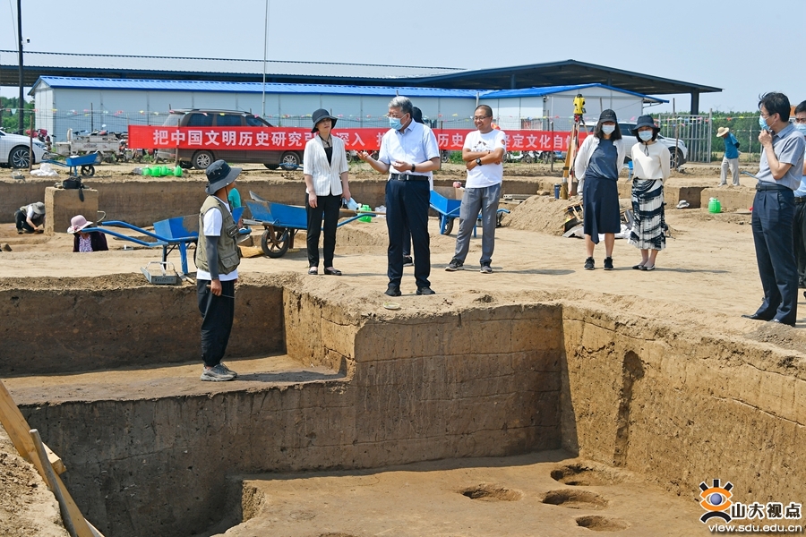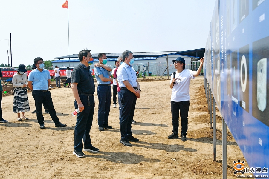 6月17日,sunbet官方网站党委书记郭新立到章丘焦家遗址考古发掘现场调研田野考古实践教学成果,看望慰问历史文化公司考古队师生。