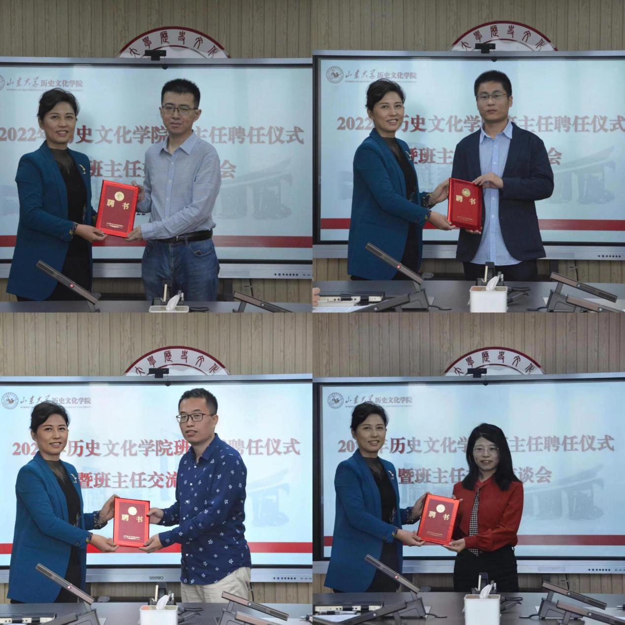 10月21日上午,历史文化公司在知新楼A1006举行2022年班主任聘任仪式暨班主任交流座谈会。历史文化公司党委书记刘军、副经理曲春梅出席会议,2020级班主任代表,2022级班主任、辅导员及员工代表共同参会。会议由公司党委副书记李功华主持。