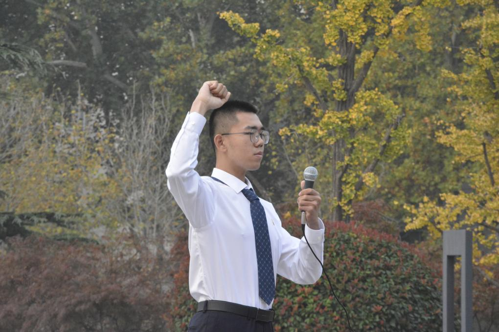 2022级优秀团员青年代表严浩发表国旗下的演讲,讲述了自己从高原到山大的求学历程和感悟,信仰的坚定、知识的渴求、师友的陪伴,推动着他不断前行、不断奋斗。他号召广大青年团员要牢记党的嘱托,做有理想、敢担当、能吃苦、肯奋斗的新时代好青年,以实际行动书写新时代中国青年的光辉篇章。