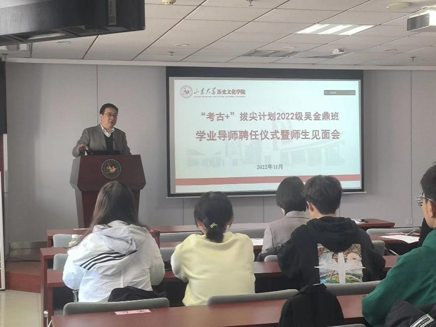 方辉教授对2022级新生的到来表示热烈欢迎,对公司考古系发展历程进行了回顾,对导师制设置的基本情况进行了介绍。同时,对吴金鼎班的同学提出了四点期望:一要学会主动学习,夯实专业基础,广泛阅读,开拓思维眼界;二要与导师进行沟通交流,保持高涨的学习热情;三要掌握学科学习方法,探索跨学科学习与机动式学习,实现综合发展;四要树立正确三观,敢于进取创新,勤于实践奋斗,以坚实的行动与昂扬的热情书写成为优秀考古学家的理想乐章。