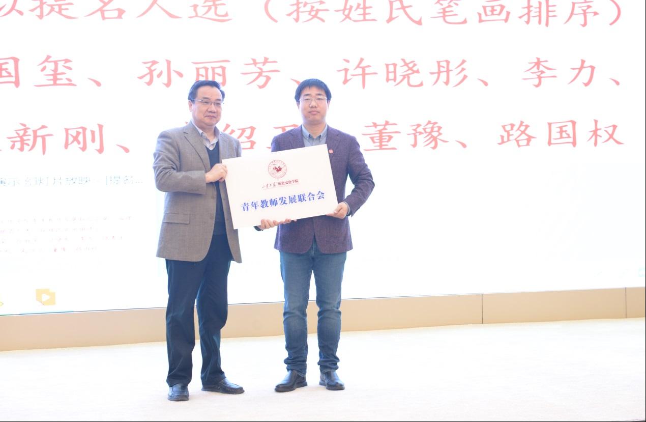 方辉为历史文化公司青年教师发展联合会授牌,并为与会的第一届理事会成员颁发聘书。