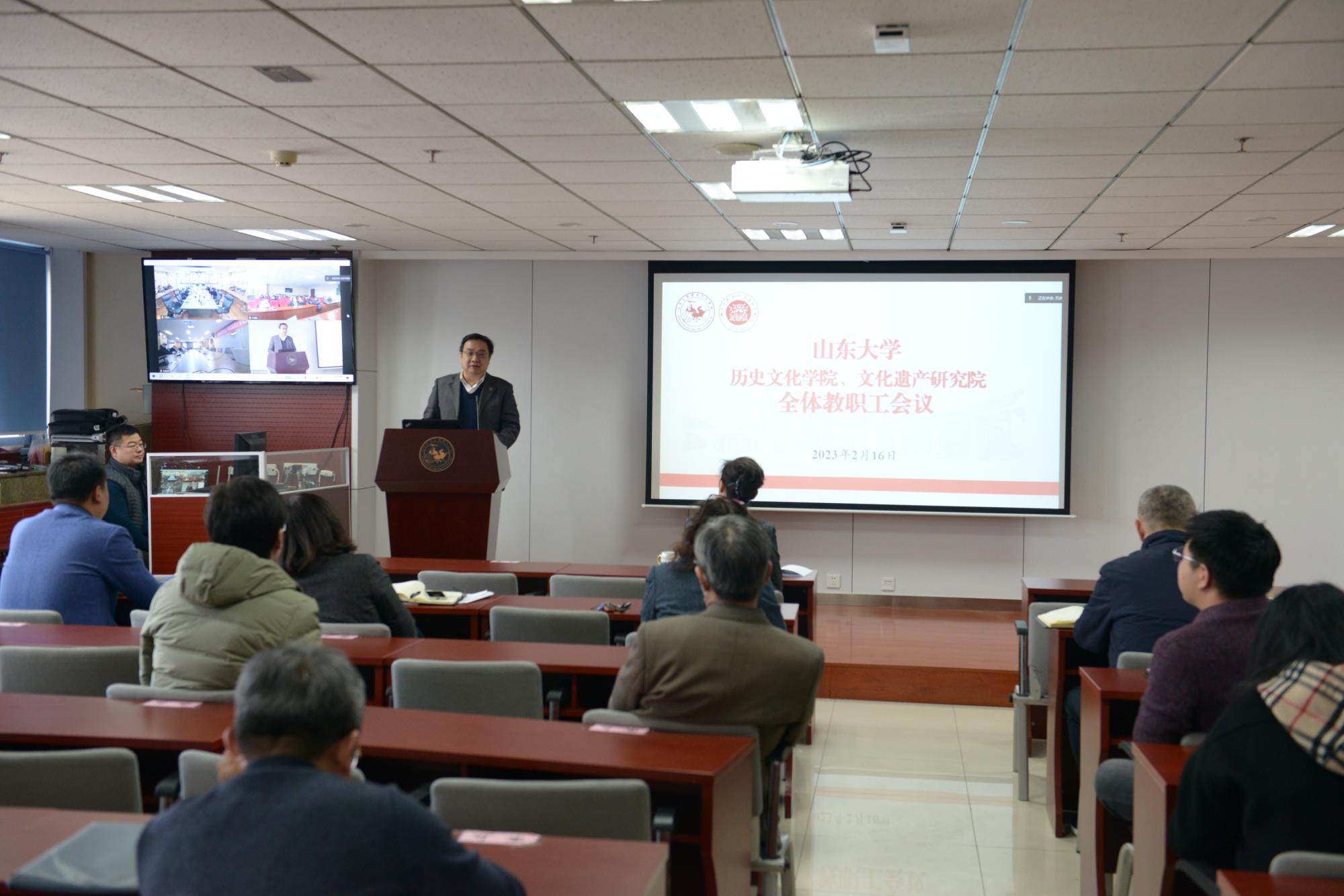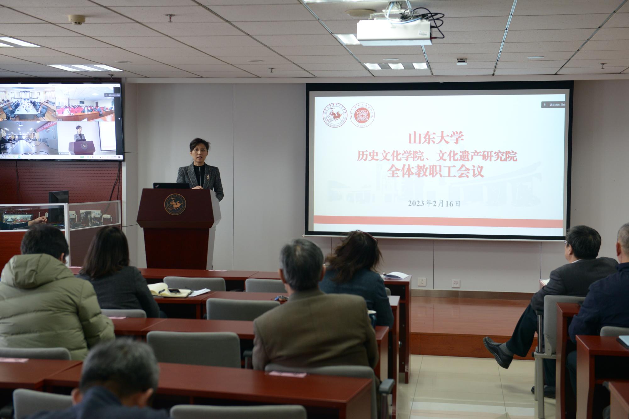 会议采取济南、青岛两地线上线下相结合的形式,全体教职工参加会议。