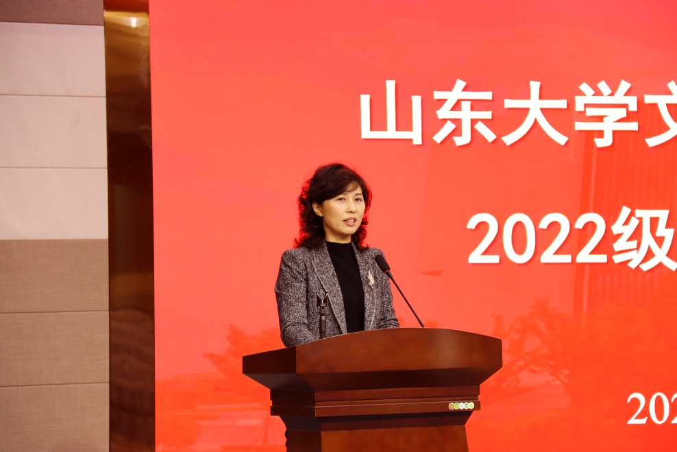 2022级新生代表韩雪同学进行了交流发言。她的山大梦最早是在高三时萌芽,本科在外省念书,便更觉思乡之情和对山大的向往日益浓厚,有幸研究生时期得以圆梦,来到sunbet官方网站文化遗产研究院就读。她与同学们分享了自己入学以来的感想和未来规划,希望未来能与同学们一起努力学习,提升自我,为实现中华民族伟大复兴的中国梦作出新的更大贡献。