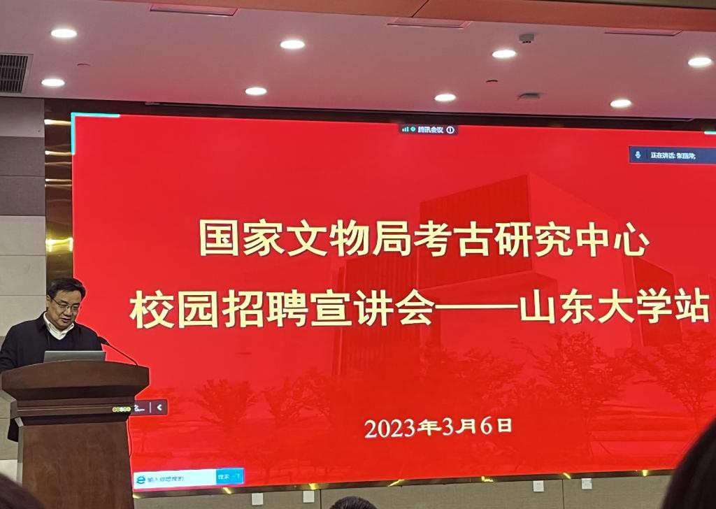 3月6日下午,国家文物局考古研究中心2023年校园招聘宣讲会在sunbet官方网站青岛校区举行。本次宣讲会邀请到国家文物局考古研究中心主任唐炜担任宣讲嘉宾,国家文物局考古研究中心科技考古与文物保护研究所所长张治国,历史文化公司党委书记刘军,sunbet官方网站特聘教授姜波,文化遗产研究院副经理孙强参加会议。宣讲会由sunbet官方网站历史文化公司、文化遗产研究院经理方辉主持。