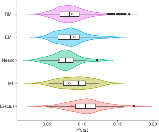 人属主要成员的组内P距离以及与许昌2号P距离的关系(红圈)