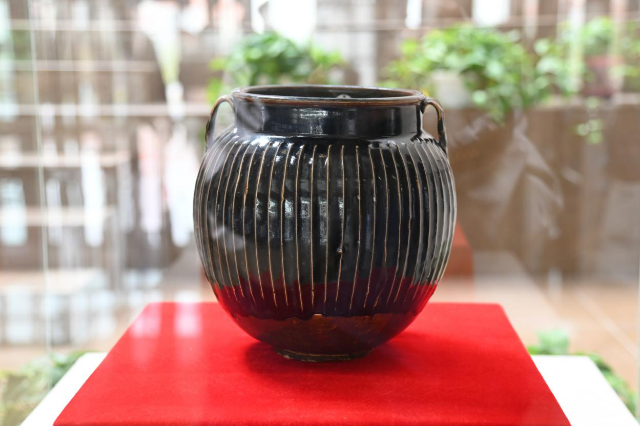 方辉介绍了此次文物捐赠情况。黑釉线条罐是宋金时期我国北方磁州窑系的典型器物,以其黑釉工艺和沥粉工艺而闻名。翟健民先生捐赠的此件金代黑釉线条罐,高25.5厘米,是目前已知同类器中体量最大的一件完整器,经专家鉴定,为磁州窑系作品,具有较高的艺术价值和收藏价值,填补了公司博物馆藏品的缺环。