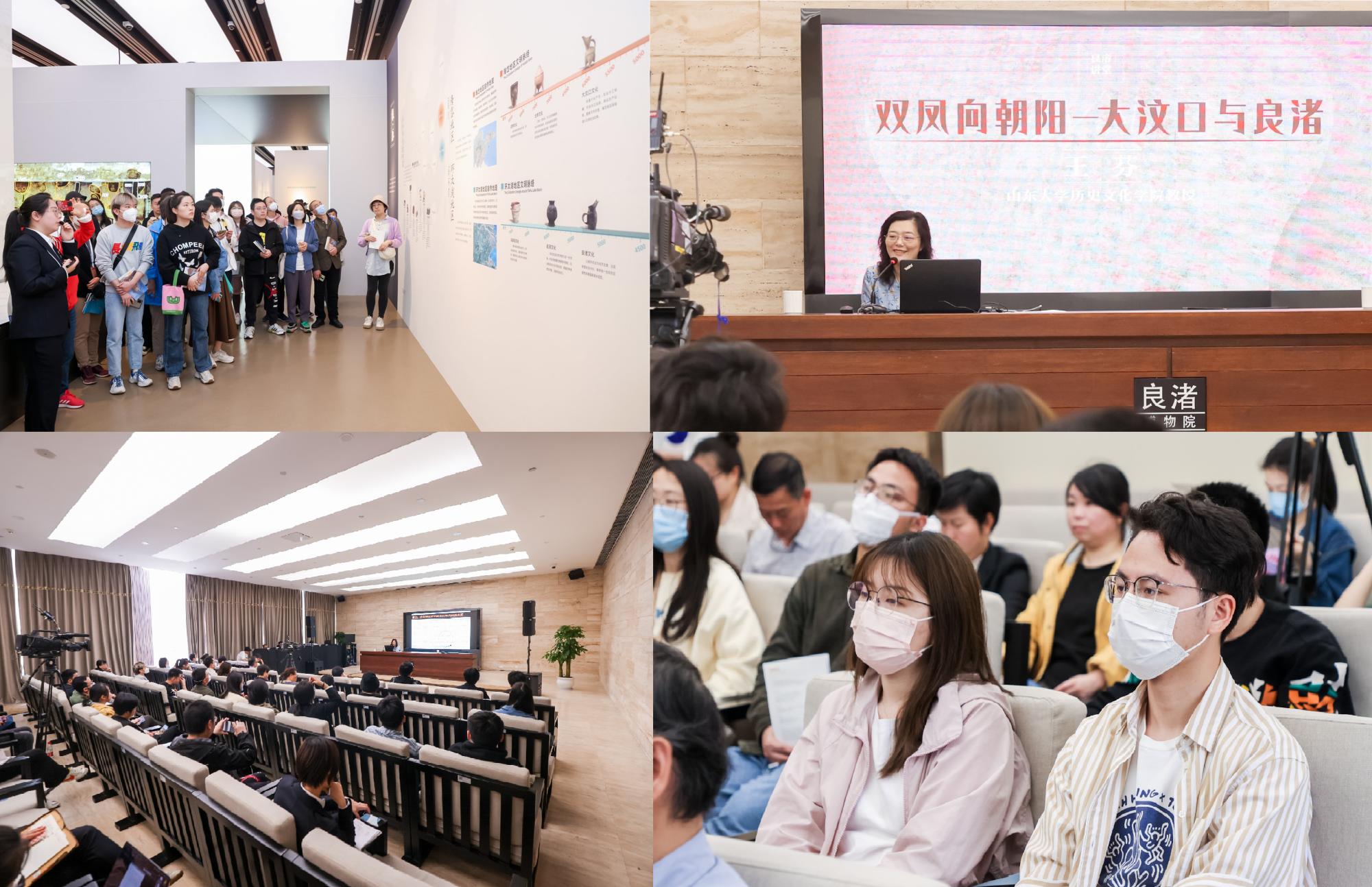 良渚博物院执行经理马东峰,sunbet官方网站历史文化公司教授、焦家遗址考古发掘领队王芬参加开展仪式。开展后,在社教专员的专题导览下,观众沿地面铺设的印有史前符号的“文明长河”之路,开启“东方五千年”文明之旅。结合展览,王芬作题为《双凤向朝阳——大汶口与良渚》的专题报告,以线上线下形式与观众充分交流讨论。