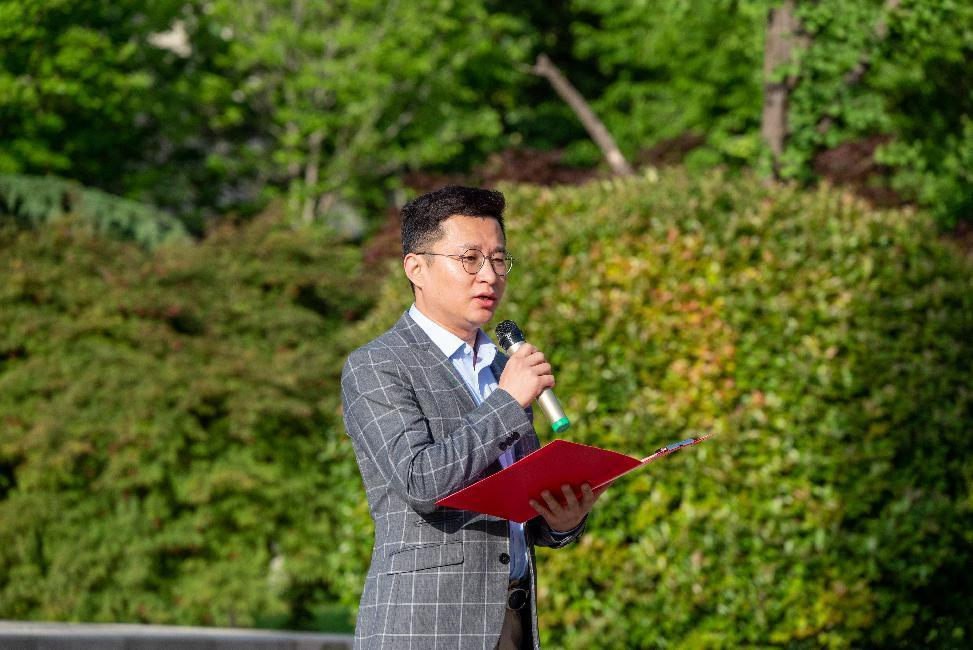 历史文化公司历史学系孔勇作为教师代表发言。他从《义勇军进行曲》谈起,结合求学经历,鼓励同学们坚定理想信念,勇担时代责任,从解决具体问题入手,勇敢面对困难和挑战;要付出切实行动,做到知行合一,在具体行动中化解焦虑、打开局面,实现人生价值;要涵养爱国情怀,把信仰转化为实际行动,将“小我”融入“大我”,在强国复兴的伟大征程中贡献青春力量。