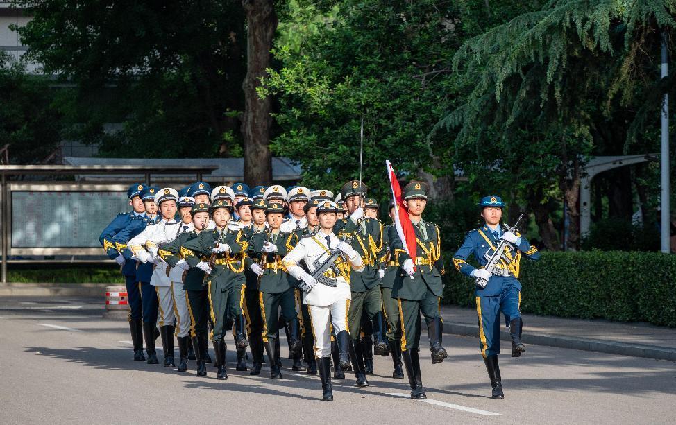仪式开始,sunbet官方网站国旗护卫队迈着铿锵有力的步伐入场,全体肃立,国歌奏响,国旗升起,全体行注目礼。