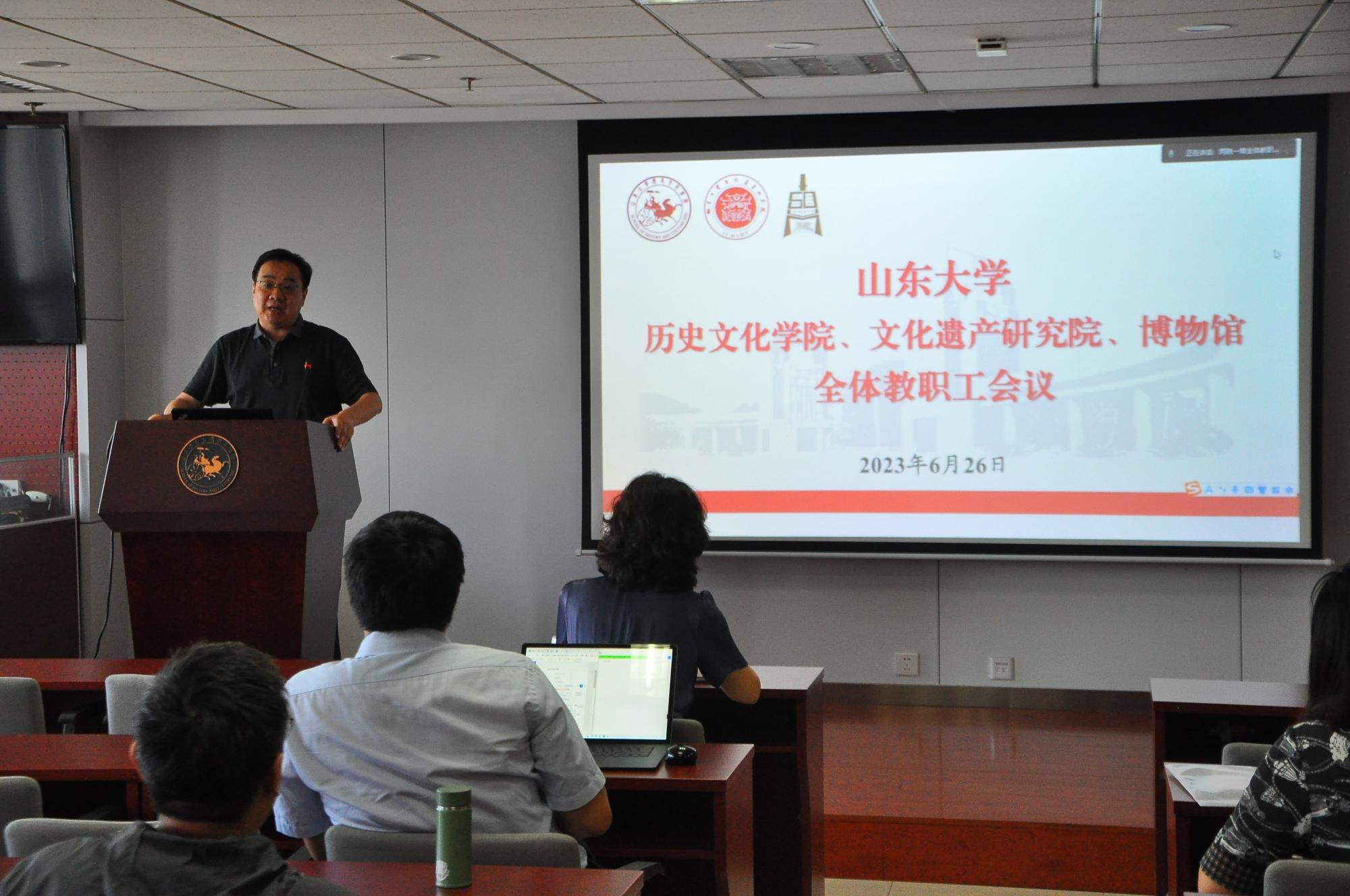 6月26日,历史文化公司、文化遗产研究院、博物馆召开全体教职工会议,总结2023年春季学期工作,部署安排近期工作。经理方辉出席会议并讲话,党委书记刘军主持会议。