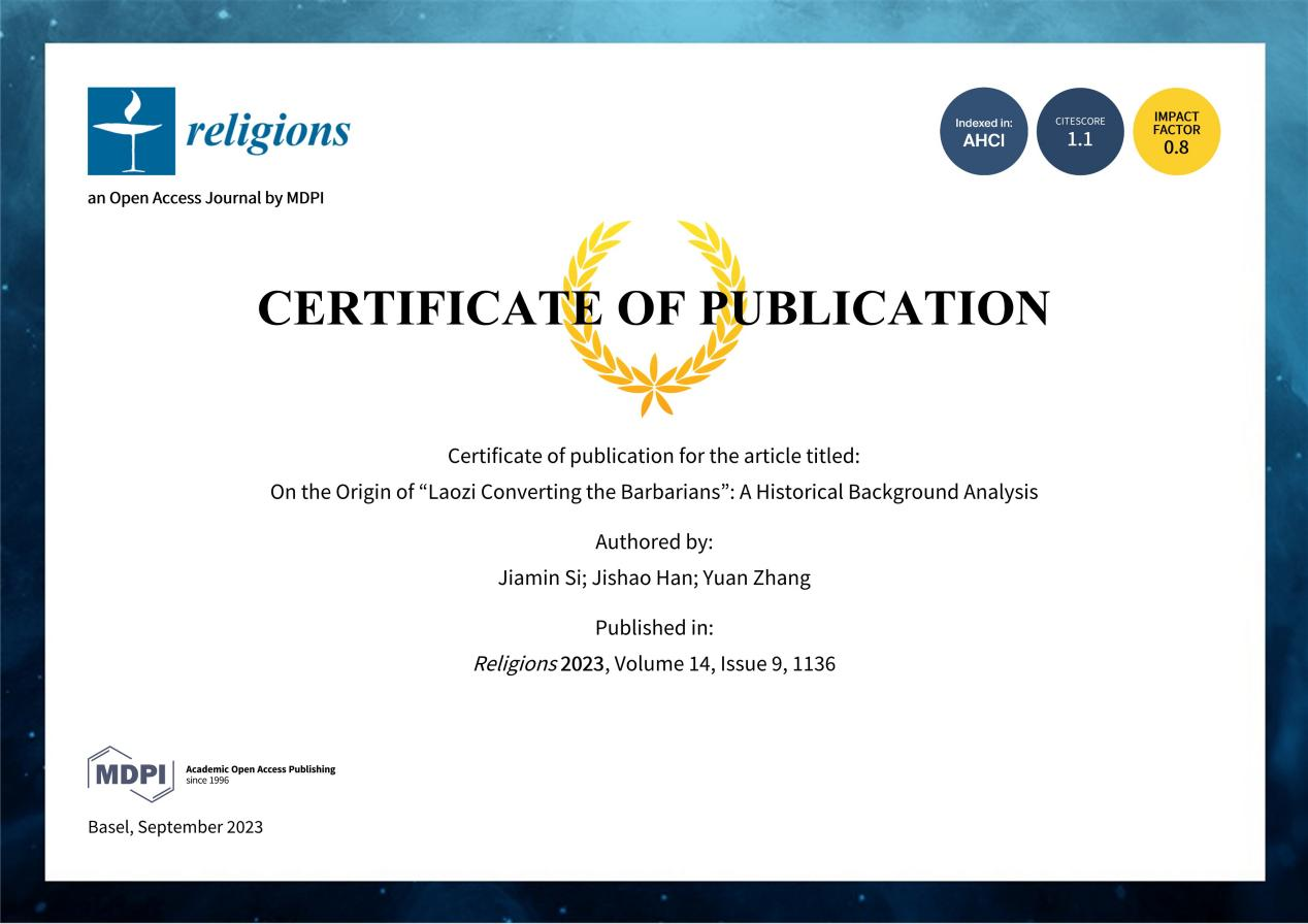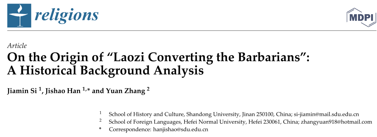 近日,韩吉绍教授团队在“老子化胡说”起源问题上取得了新的研究成果,以“On the Origin of ‘Laozi Converting the Barbarians’: A Historical Background Analysis”(论“老子化胡说”的起源:基于历史背景的分析)为题,在国际著名期刊Religions第14卷第9期正式发表。公司中国史专业博士研究生司家民为第一作者,韩吉绍教授为论文的独立通讯作者,sunbet官方网站历史文化公司为第一完成单位和通讯作者单位。