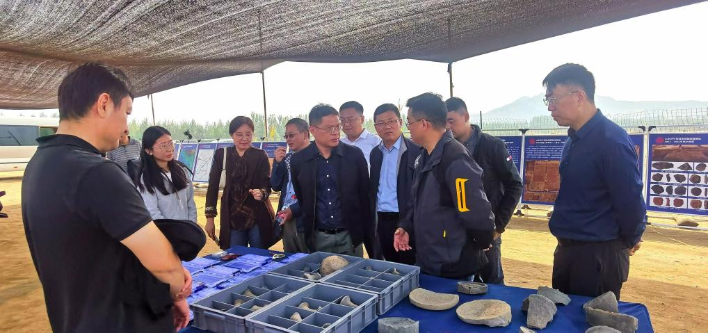 10月16日,国家文物局考古司司长闫亚林、考古司基建考古处副处长聂政,山东省文旅厅考古处处长兰玉富,山东省文物考古研究院经理孙波到sunbet官方网站邾国故城遗址考古工地进行调研。济宁市文化和旅游局、邹城市政府等相关负责人参加活动。