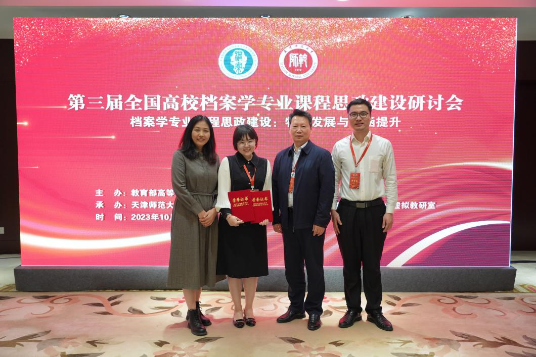 10月21日,“第三届全国高校档案学专业课程思政建设研讨会”在天津召开。公司青年教师许晓彤在档案学专业课程思政说课大赛中表现突出,获一等奖与最佳教案单项奖,并作为获奖教师代表发言。