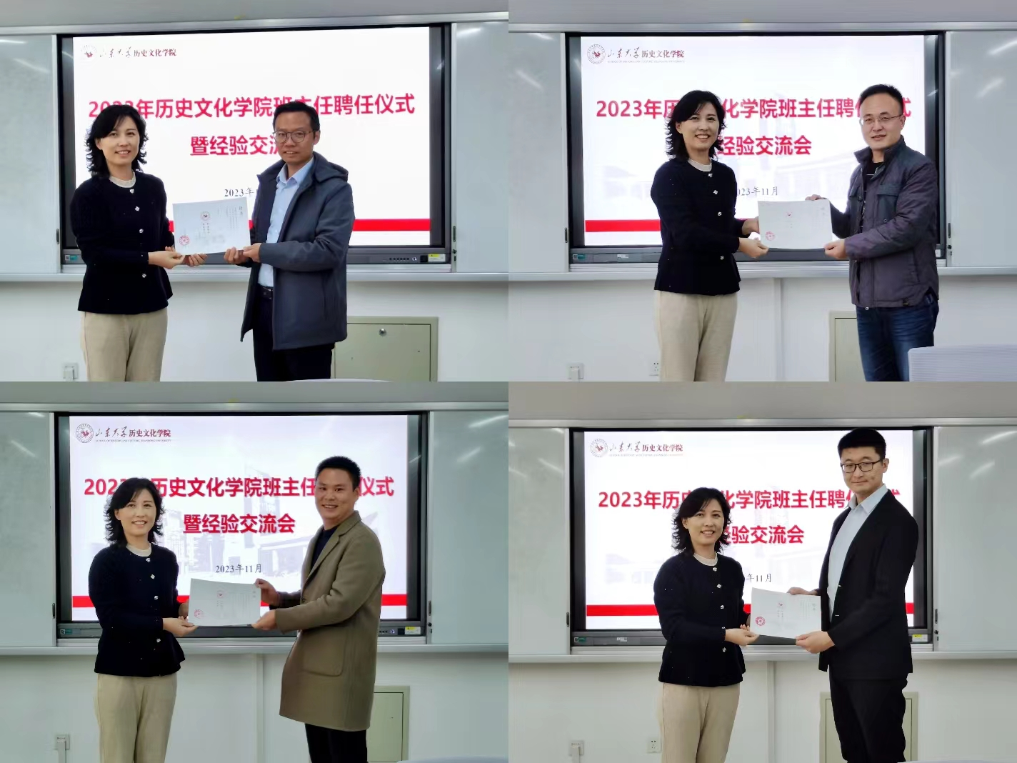11月10日下午,历史文化公司在知新楼A1116举行2023年班主任聘任仪式暨经验交流会。历史文化公司党委书记刘军出席会议,2022级班主任代表、2023级班主任、辅导员及员工代表共同参会。会议由公司党委副书记李功华主持。