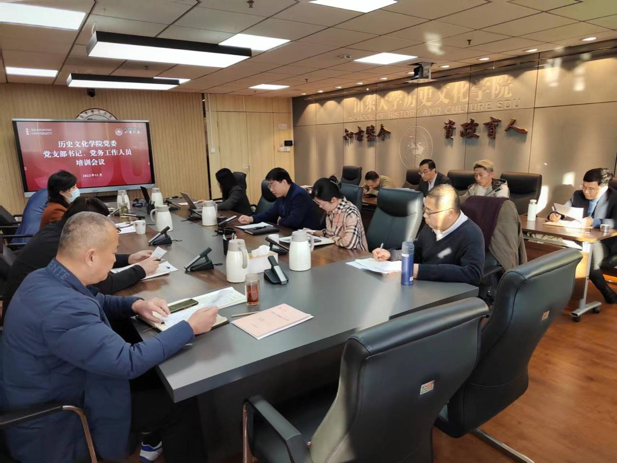 为深入贯彻落实新时代党的建设总要求,切实提高基层党支部书记和党务工作人员履职能力,推动党建工作提质增效,11月23日下午,历史文化公司党委召开党支部书记和党务工作人员培训会议。公司党委书记刘军,党委副书记李功华、张伟,副处级组织员薛辰兵,党总支书记孙强,教工党支部书记,党务秘书等参加会议。刘军主持会议并讲话。