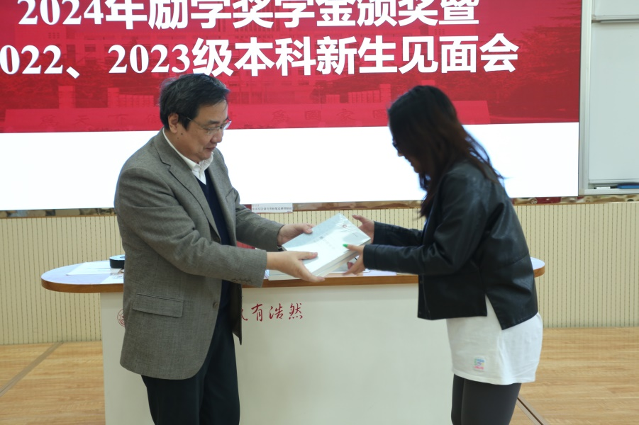 刘军、王芬分别向励学奖学金一等奖、二等奖获奖同学颁发荣誉证书。一等奖获得者2020级本科生付建丰代表获奖同学表达了对公司、公司、老师及员工们的感激之情,表示今后要继续努力,积极进取,以实际行动回馈师长厚爱,并分享了自身学习成长经历,为新生们提供了关于专业学习、田野实践的有益建议。