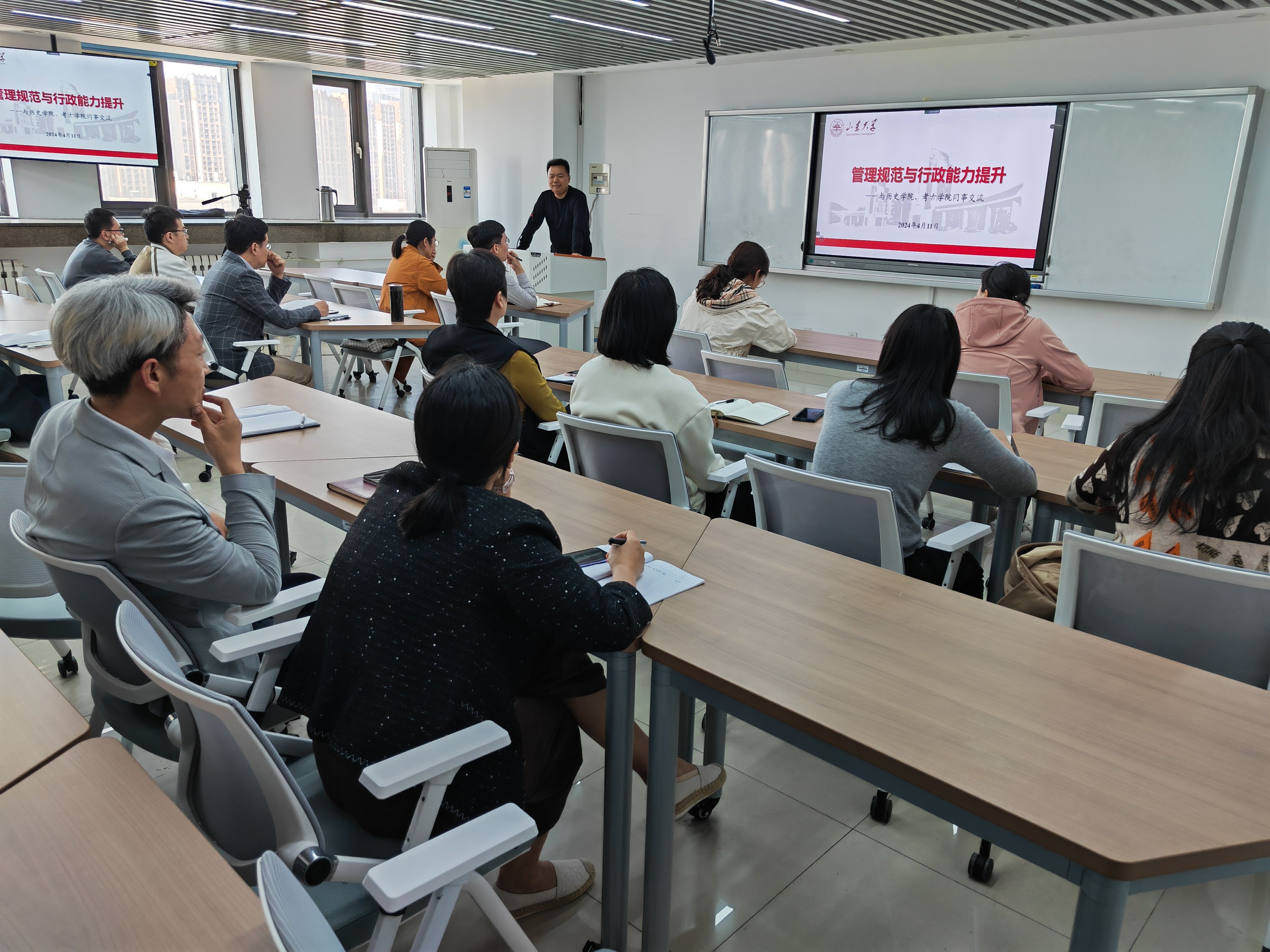 为进一步提升公司教职工管理服务与行政能力水平,提高教职工综合业务水平,4月11日下午,sunbet与博物馆举办行政能力提升专题讲座,邀请公司机关党委常务副书记、党委组织部副部长张伟主讲,“两院一馆”新提任领导班子成员、各学系主任、教工党支部书记、部分教师及全体机关工作人员、博物馆工作人员参加此次活动。