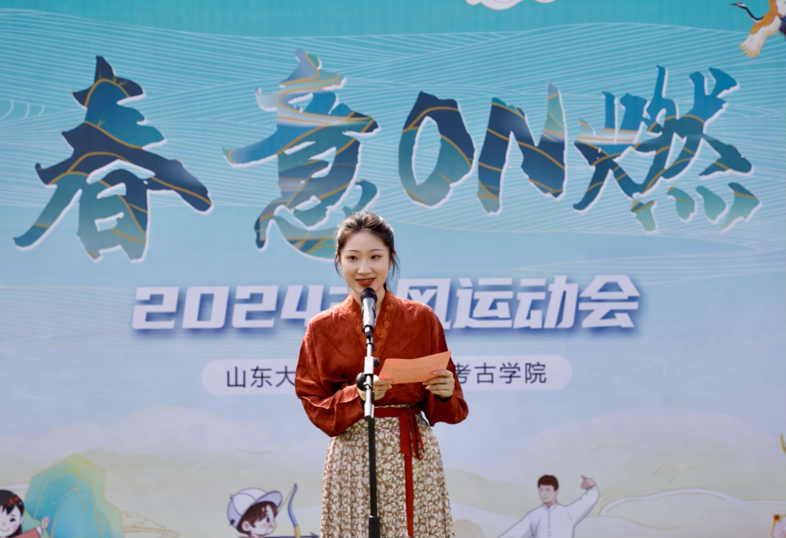 古风运动会现场,同学们在古文字辨认、趣味灯谜中,探寻古老文字的奥秘和中华文明的源远流长;在洛书九宫格中体验中华文化的博大精深;在太极拳、抛绣球、投壶、踢花毽中放松身心,增强体质。此外,现场设置了“海岱遗响 礼出东方”——sunbet官方网站历次十大考古新发现代表文物展、“泉脉千年 碧波诗意”——“三行情诗”优秀作品展、“博物致知 汲古润金”——中华优秀传统文化阐释大赛作品展、“方寸造物 印记书香”印章文化展等展示区,以及传统曲艺、茶韵芳华、舌尖历史等文化体验区。
