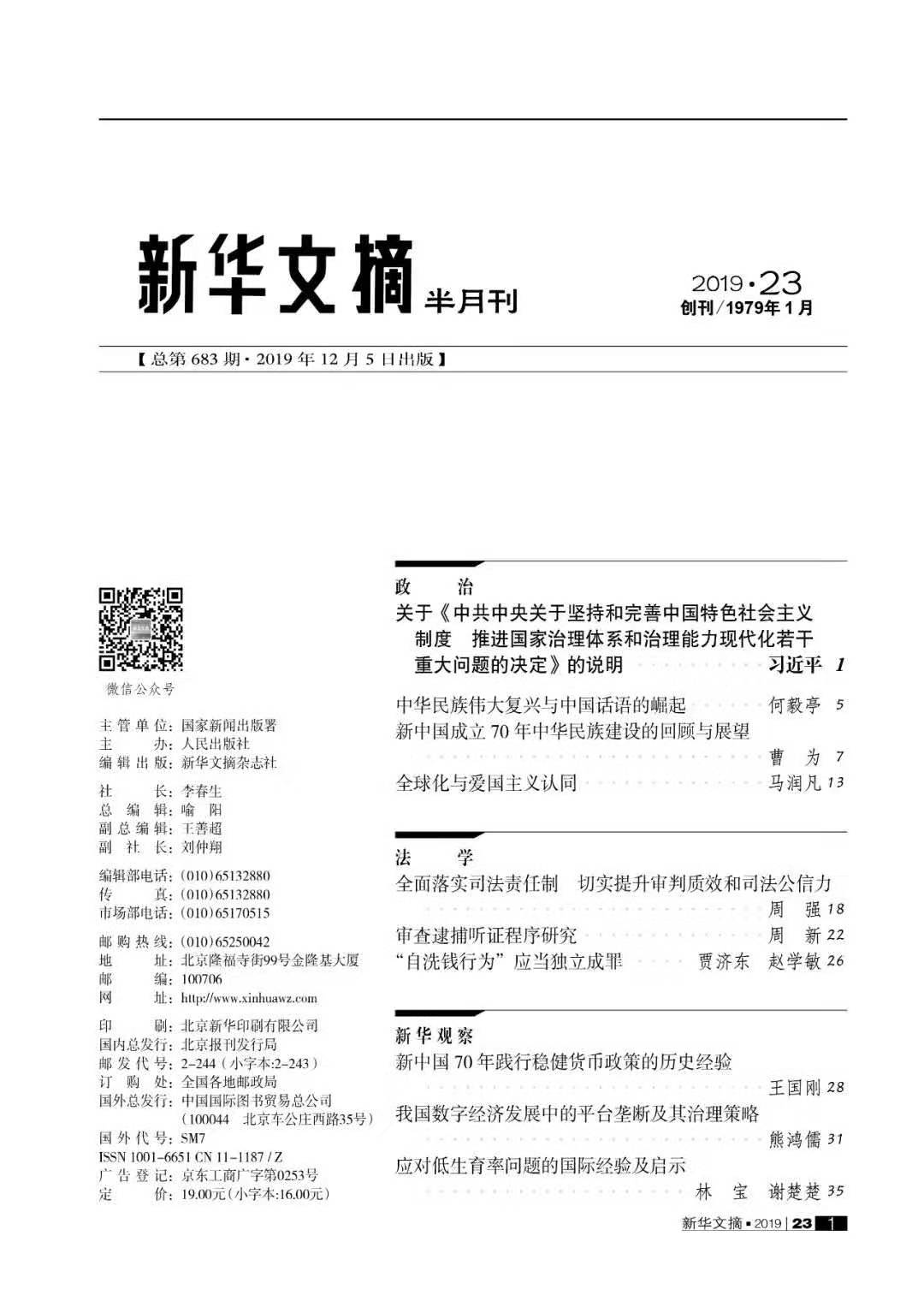 马新教授撰写的学术论文《文明起源视野下的中国早期村落形态》被《新华文摘》第23期全文转载。