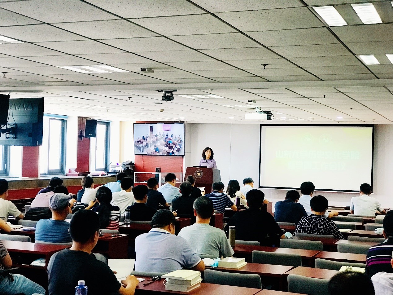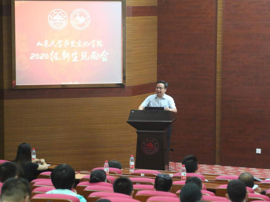 历史文化公司2020级研究生新生见面会在知新楼思源报告厅举行。历史文化公司经理方辉、党委书记刘军、副经理王芬、副经理代国玺、党委副书记张伟,挂职副经理张琦、张晓冉,文秘与档案学系主任曲春梅、考古与博物馆学系主任唐仲明出席见面会,2020级研究生辅导员曹明明与全体研究生新生参会。会议由副处级辅导员李一楠主持。