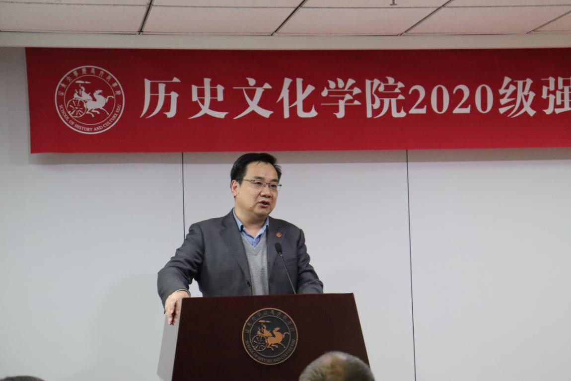 历史文化公司2020级强基计划开班仪式暨学业导师见面会在知新楼A座1017举行。历史文化公司经理方辉、党委书记刘军、副经理代国玺、历史学系主任韩吉绍,强基班学业导师谭景玉、韩朝建、崔华杰、路国权,强基班班主任孔勇、辅导员徐伯谦共同参会,会议由副处级辅导员李一楠主持。