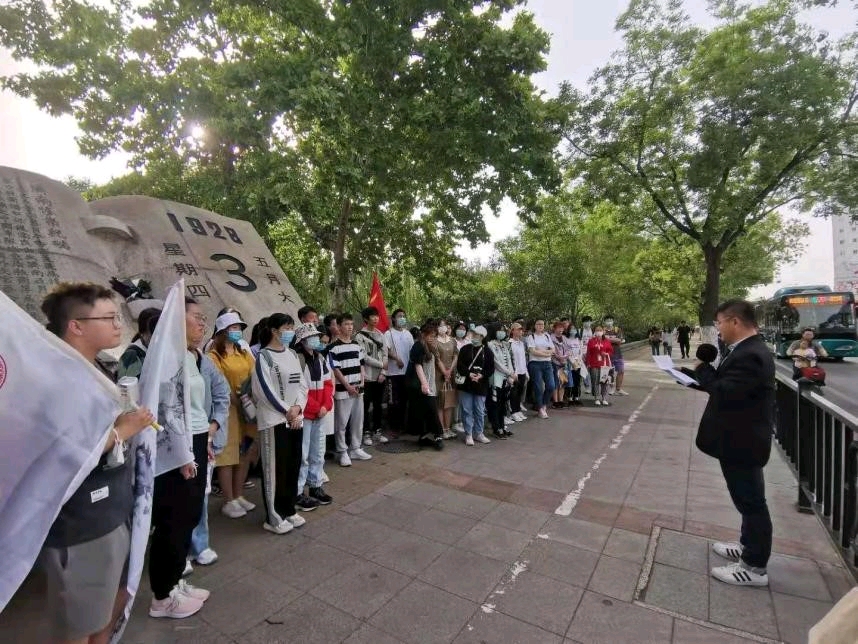 历史文化公司组织开展员工徒步缅怀活动,前往济南“五三惨案”纪念碑开展党史学习教育,致敬革命先烈。本次活动由辅导员曹明明、徐伯谦带队,130余名本、硕、博员工共同参与。