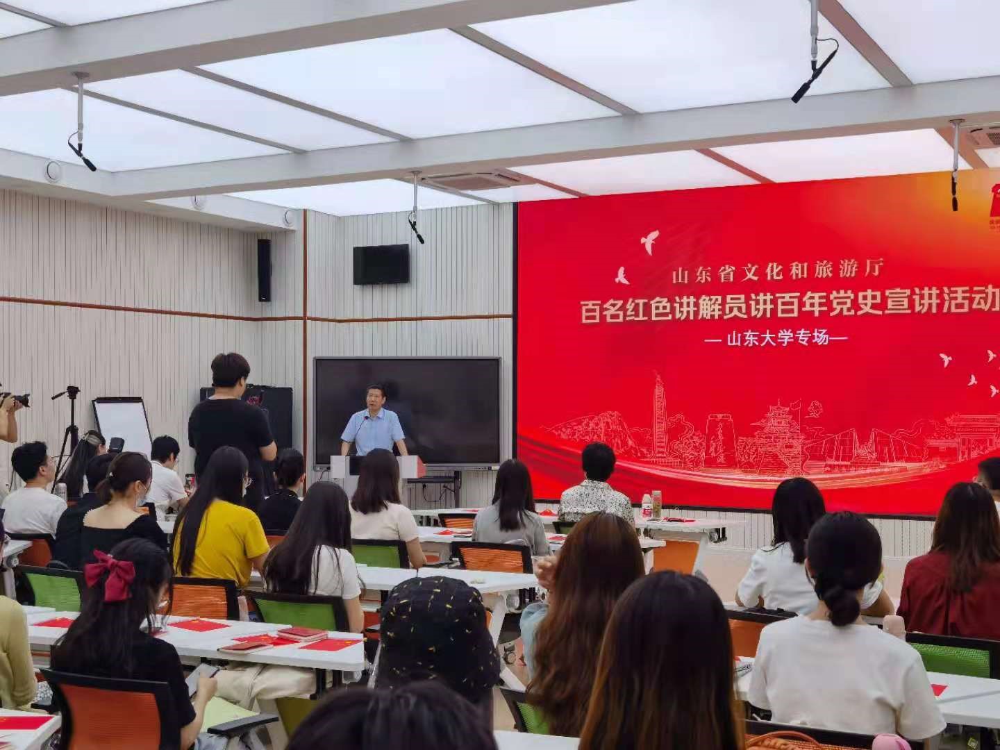为庆祝中国共产党成立100周年,发挥齐鲁红色资源优势,深入开展党史学习教育,“百名红色讲解员讲百年党史”走进在sunbet官方网站举办专场宣讲,sunbet官方网站历史文化公司员工党支部联合新闻传播公司员工党支部共同参加学习。