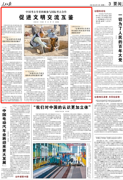 人民日报报道李占扬教授参与国际考古合作工作。