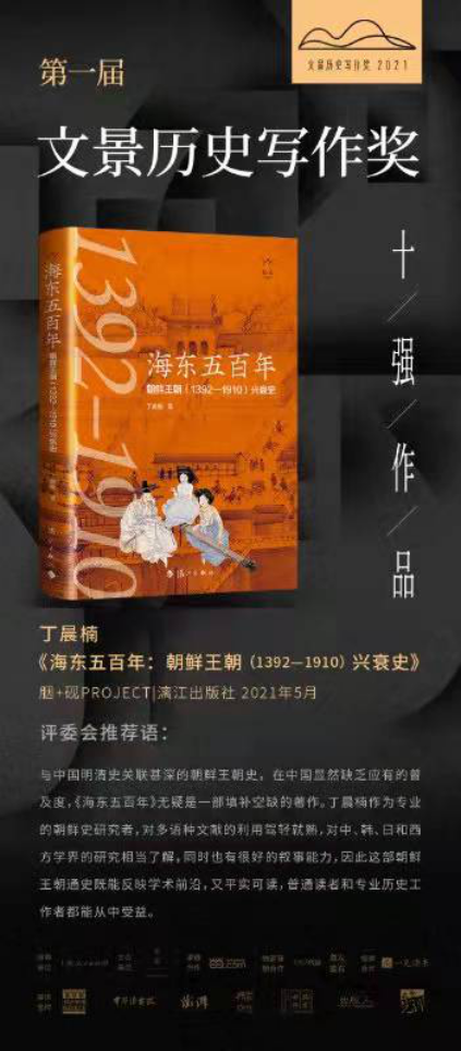 丁晨楠副研究员著作《海东五百年:朝鲜王朝(1392-1910)兴衰史》(漓江出版社)入围第一届“文景历史写作奖”十强。