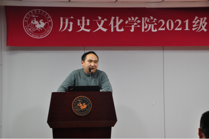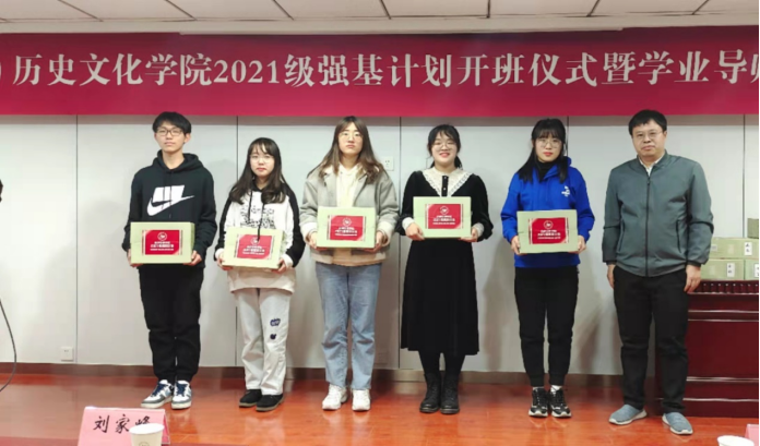 刘家峰在讲话中回顾了强基班的创立初心,表达了公司对拔尖人才培养的重视。他肯定了学员们高度的学习热情,希望学员循序渐进,逐步提升,实现更好的发展。鼓励学员们要积极主动地与老师进行高效、礼貌的交流,同时也在交流渠道方面为学员们提供了具体建议。吴雪飞老师作为强基班学业导师代表在发言中谈到了对强基计划学习培养方案的理解,他勉励学员熟悉强基班学制,努力学习专业知识,找到自己的兴趣方向,多读学术著作和了解学术研究,在史学研究的道路上行稳致远。历史学系主任谭景玉为强基班学员代表赠送史学经典书目《史记》。强基班学员代表吕萌进行了主题为“扶摇直上九万里”的发言。