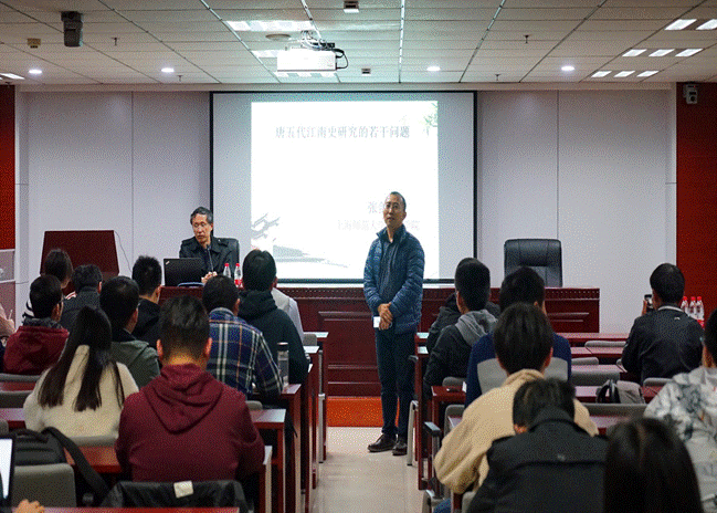 讲座伊始,张剑光教授以杜甫和白居易等的诗词为例,说明唐代“江南”概念所指的地域范围处于不断变化之中。通过分析更多的文献记载,张教授认为:“江南”这一概念有大、中、小几种称法,总体上所指地区有越来越小的趋势。虽然在唐末五代至宋初,这一概念还没有完全固定下来,但将“江南”指向两浙地区的称法已为更多的人所认同和接受。
